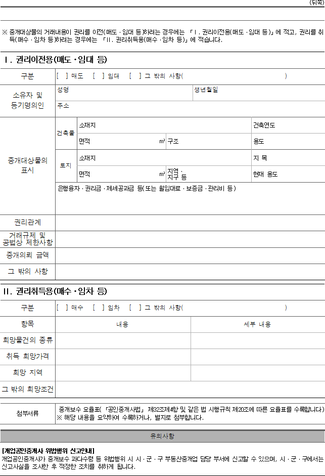 중개사법 공인중개사법 - 중개업 등 총회 학습(오답) Q. 무주택자인 甲이 주택을 물색하여 매수하기 위해 개업공인중개사인 乙과 일반중개계약을 체결하고자 한다. 이 경우 공인중개사법령상 표준서식인 일반중개계약서에 기재하는 항목을 모두 고른 것은? 19. 무주택자인 甲이 주택을 물색하여 매수하기 위해 개업공인중개사인 乙과 일반중개계약을 체결하고자 한다. 이 경우 공인중개사법령상 표준서식인 일반중개계약서에 기재하는 항목을 모두 고른 것은? ㄱ.소유자 및 등기명의인 ㄴ.희망 지역 ㄷ.취득 희망가격 ㄹ.거래규제 및 공법상 제한사항 ① ㄷ ② ㄱ, ㄴ ③ ㄴ, ㄷ ④ ㄷ, ㄹ ⑤ ㄱ, ㄴ, ㄷ 정답체크 1번 2번 3번 4번 5번 확인 해설보기 ③ ㄴ: 희망 지역, ㄷ: 취득 희망가격번호구분내용 1조문 2판례 3솔루션 스크랩 다음문제 이전문제